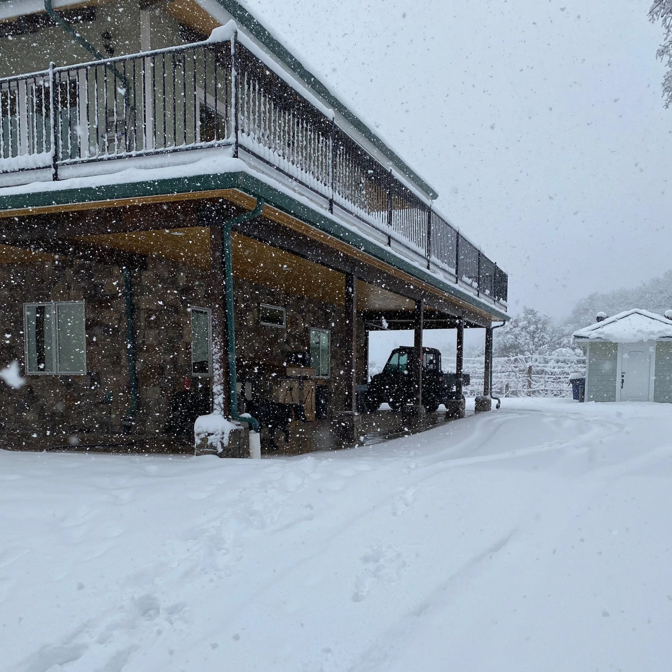 The Cabin has 3 bedrooms and 2 full bathrooms. The couch on the second story has a pullout Queen bed.