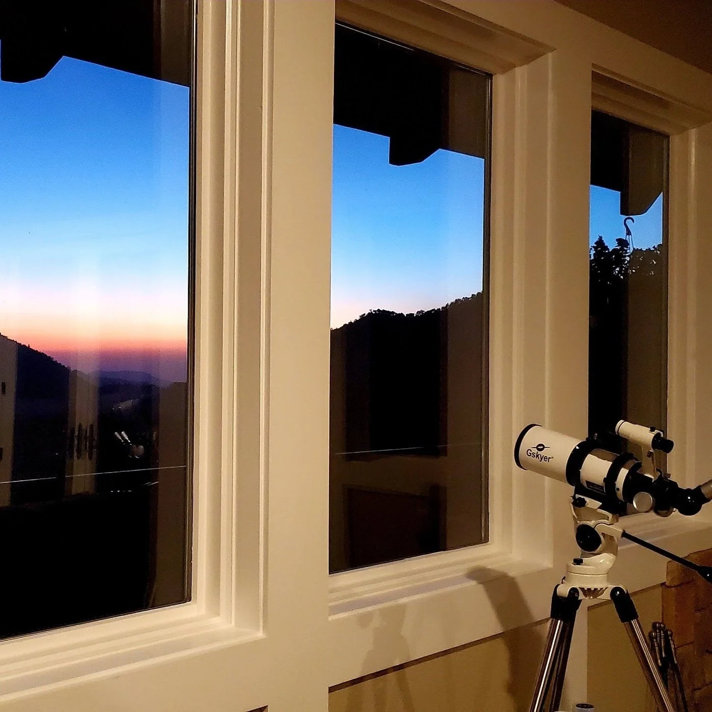 The entire second story has uninterrupted window views of the surrounding mountains and forest.